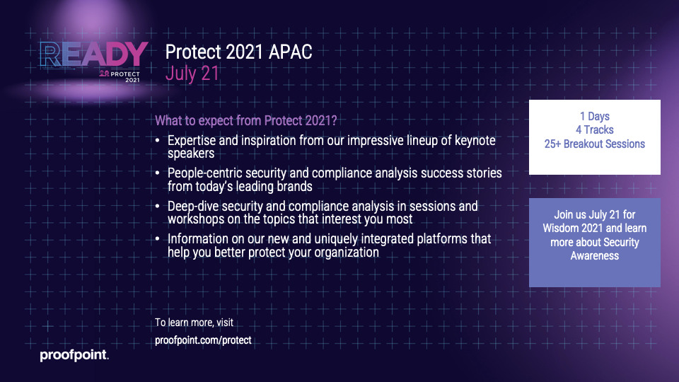 加入 Proofpoint Protect APAC虛擬會議 學會以專家洞察力保護您的人員